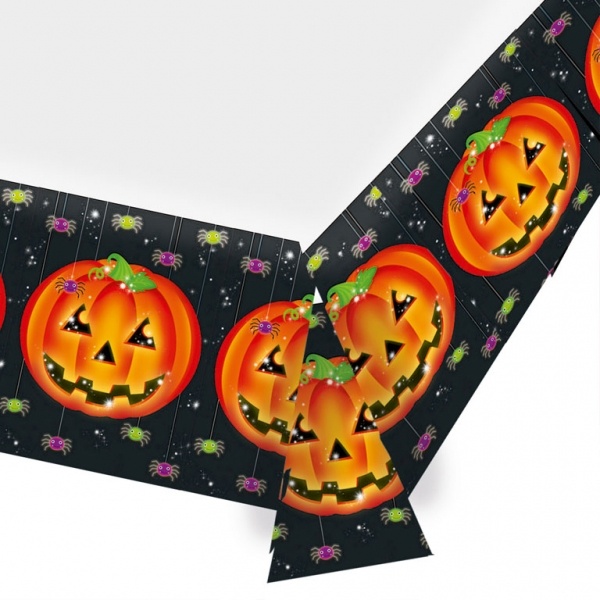 Igelitový halloweenský ubrus na stůl s dýněmi.