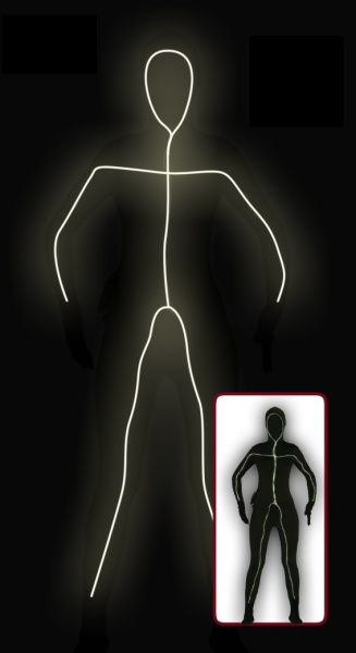 Toto je naprostá bomba. S tímto kostýmem doslova zazáříte na párty. Černý oblek, který ve tmě září a vytvoří obrys kresleného panáčka.