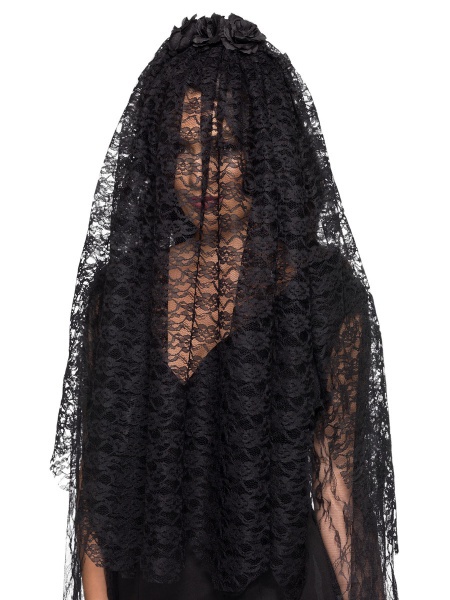 Pojmy spojené s tímto produktem: závoj, černá, mrtvá nevěsta, krajka, doplněk kostýmu, Halloween, růže, květina