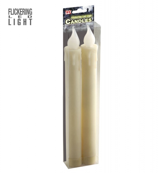 Sada 2 kusů bílých gothic svíček na baterky, které nejsou součástí balení.Pojmy spojené s tímto produktem: svíčka, bílá, sada, baterky, gothic, dekorace, Halloween-